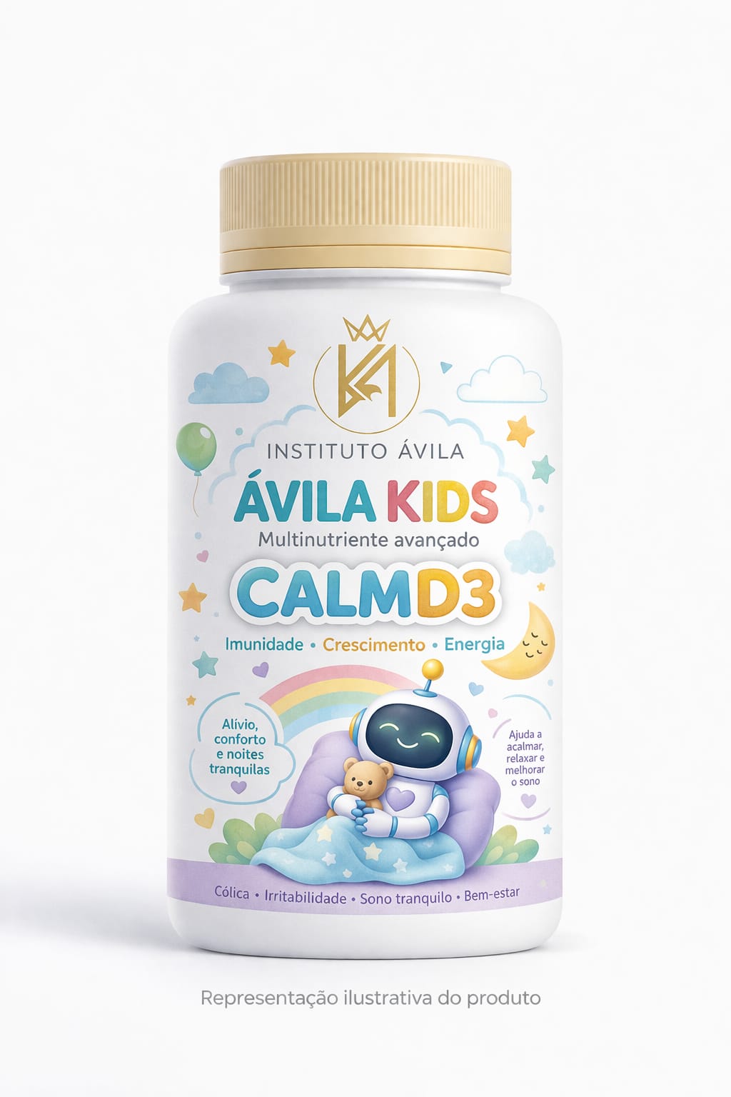 ÁVILA KIDS CALMD3 é um multinutriente infantil que ajuda no equilíbrio da flora intestinal do bebê, reduzindo cólicas, desconfortos abdominais e irritabilidade. Enriquecido com vitamina D3, também apoia o crescimento saudável e a imunidade. ✔️ Ajuda a reduzir cólicas e desconfortos ✔️ Contribui para um sono mais tranquilo ✔️ Equilibra a flora intestinal ✔️ Apoia a imunidade e o desenvolvimento infantil