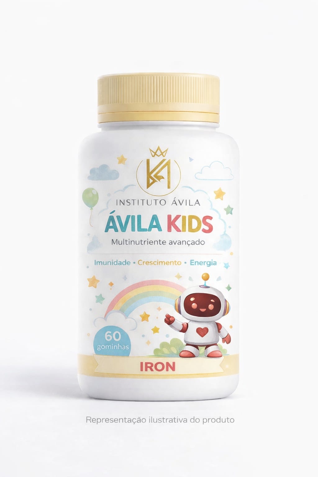 ÁVILA KIDS IRON é um suplemento infantil com ferro + vitamina C que ajuda na absorção do ferro e no combate à anemia. Sua fórmula apoia a formação do sangue, aumenta a energia e contribui para a imunidade da criança. ✔️ Auxilia na prevenção da anemia ✔️ Mais energia e disposição ✔️ Apoio à imunidade ✔️ Melhor absorção de nutrientes essenciais.
